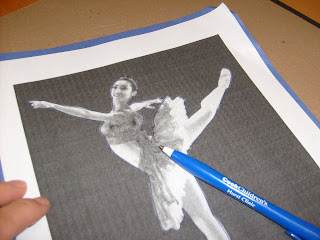 First, I went to the internet and did a google image search for ballet images. I found three images showing different dance poses and printed them out. You may need to then photocopy them larger if you wish, or I used Photoshop to enlarge the images. Once I have them printed out I traced them onto the color paper.